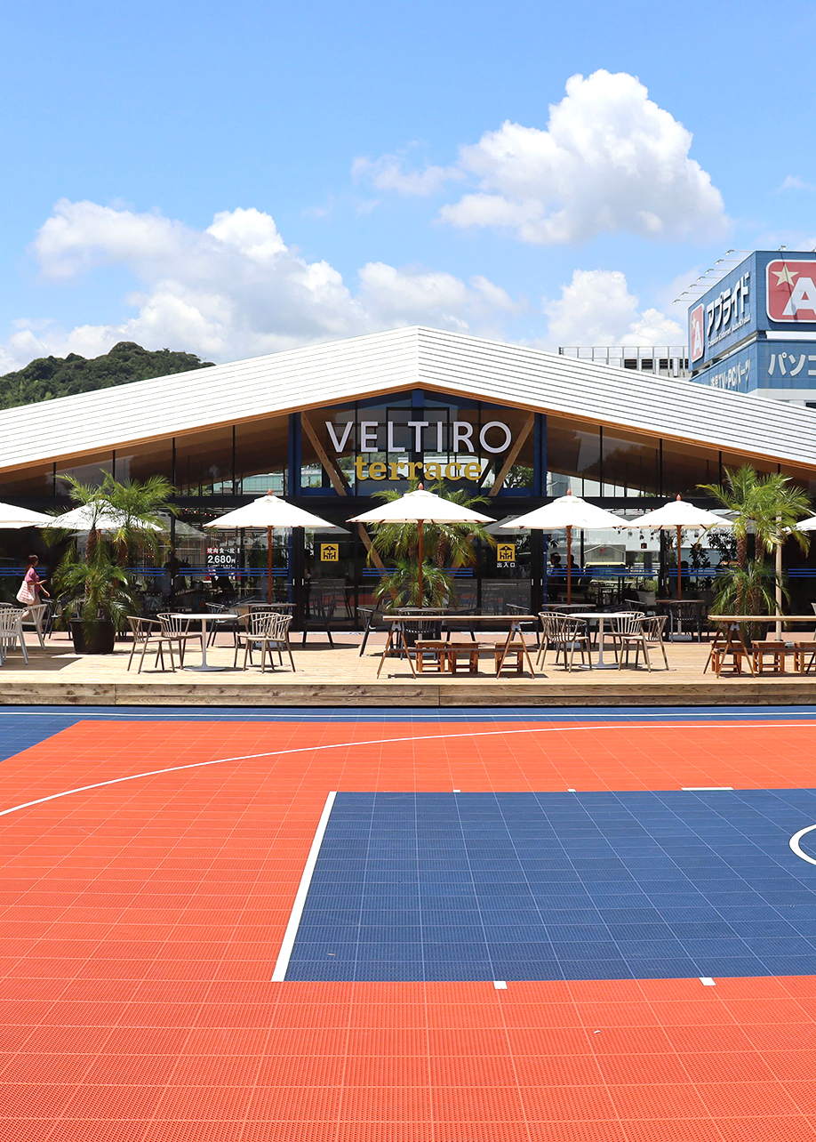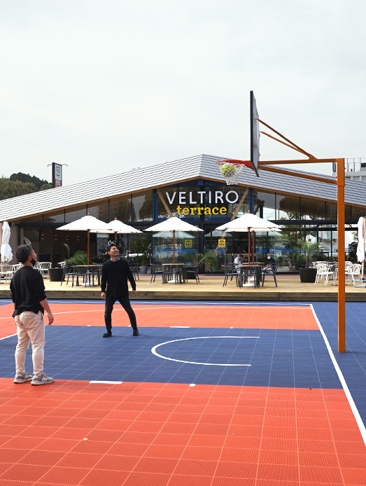 ベルティーロテラスに隣接する3on3のコートです。どなたでも自由に使っていただけます。コートを見ながらのお食事もオススメです。