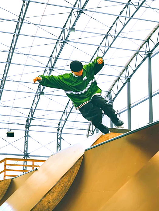 世界のコンテストシーンのレギュレーションを想定した世界基準のセクションを配置。スケートボード・BMX・インラインスケートを中心とした幅広いジャンルに対応できるセクションを完備。初めての方でもチャレンジできる無料体験会なども開催しています!